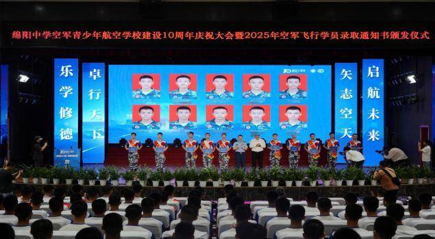 7月11日,绵阳中学空军青少年航空学校建设10周年庆祝大会暨2025年空军飞行学员录取通知书颁发仪式在绵阳中学举行。西部战区空军政治工作部,四川省教育厅,绵阳市市委、市政府等军地领导出席仪式,共同见证青航校学子圆梦蓝天的美好时刻、共同分享军地联合培育飞行英才的收获喜悦、共同憧憬青春能量助推强军目标的美好愿景。