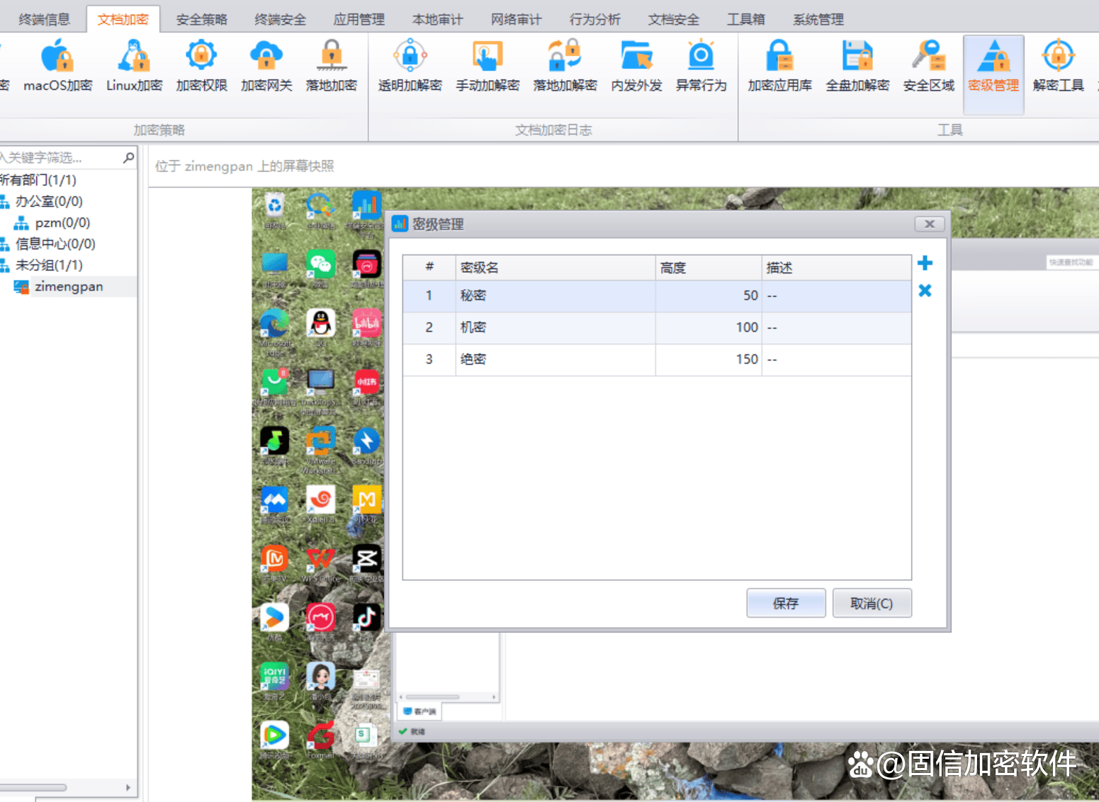 密级管理:加密文件可以有不同保密级别,各级别不同的加解密权限,方便高级别领导解密低级终端文件和查看
