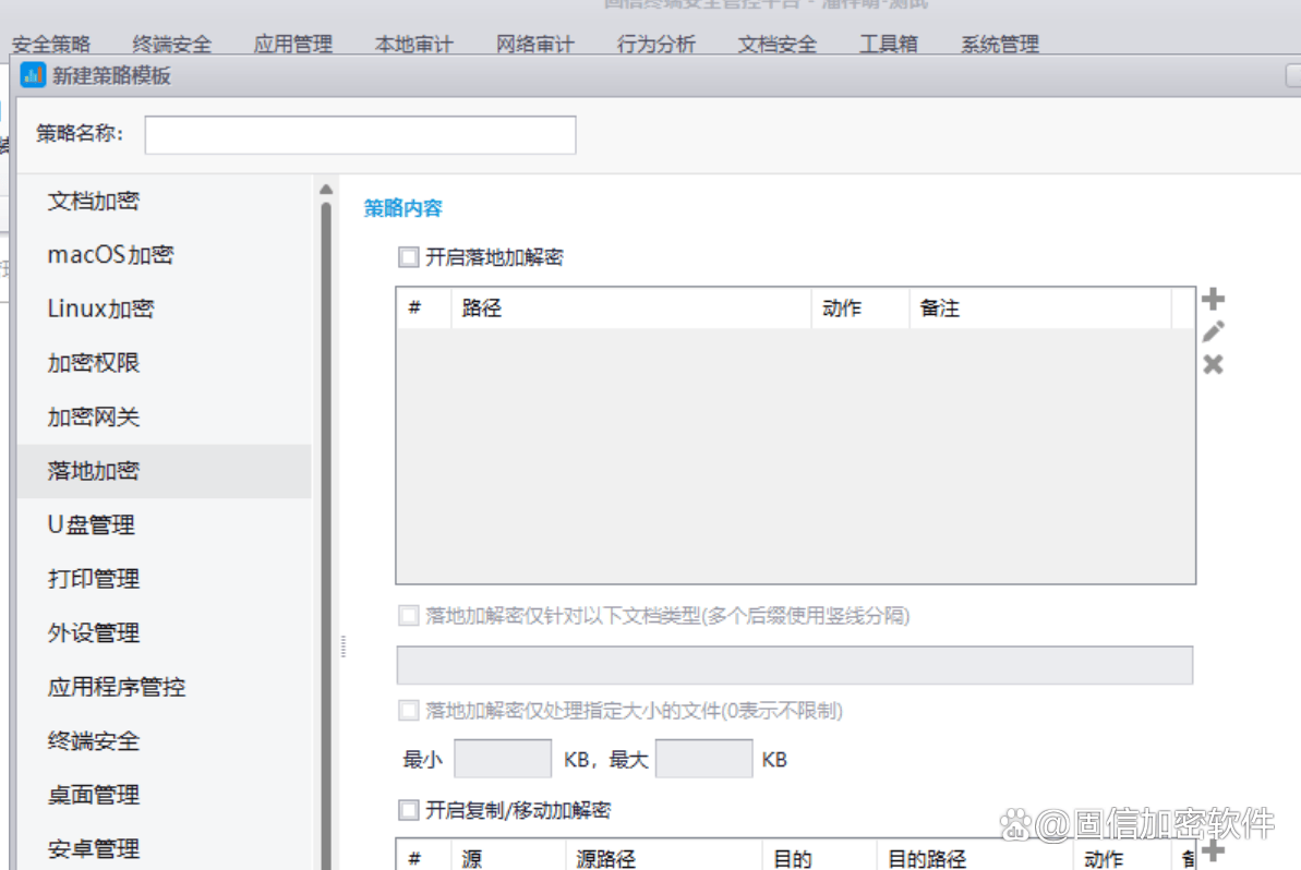 落地加密:对电脑产生的文件,或文件复制到u盘、共享目录行为加密,保护流转的文档安全