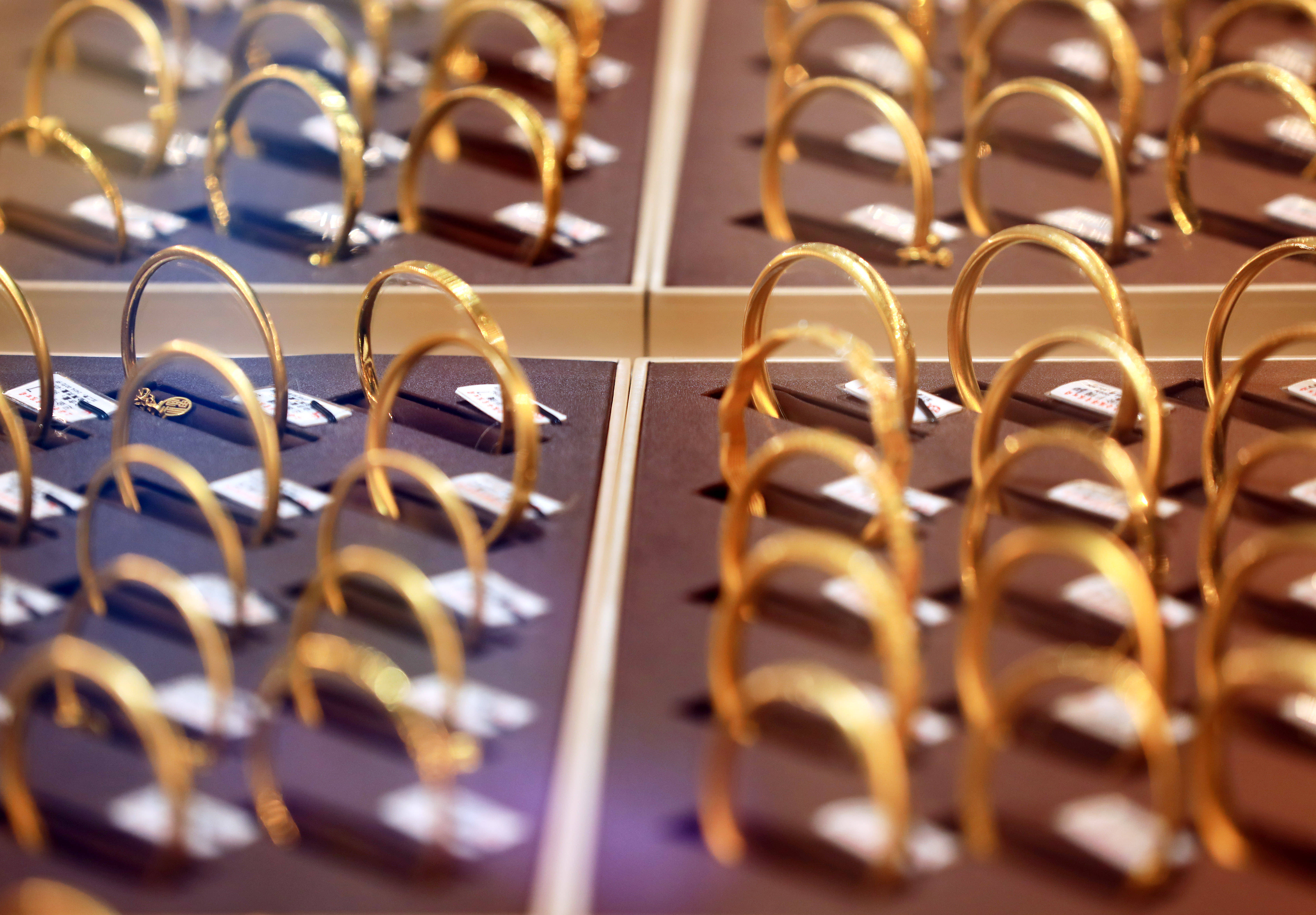 10月9日,北京菜市口百货投资金条售价911.5元/克,一名女顾客在3块不同款式的100克投资金条中选中一块。售货员背过身去准备打包计算价格,几分钟时间又转头告诉顾客,金条价格需要重新计算。