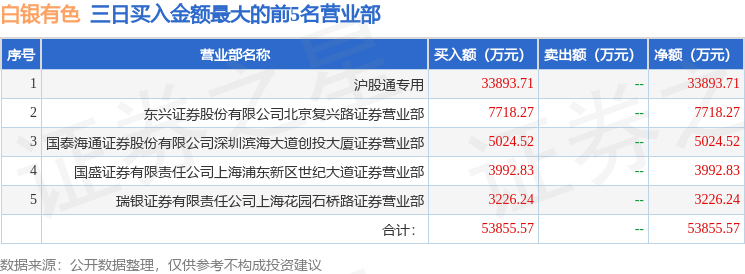 证券之星消息,沪深交易所2025年10月10日公布的交易公开信息显示,白银有色(601212)因非ST、*ST和S证券连续三个交易日内收盘价格涨幅偏离值累计达到20%的证券登上龙虎榜。此次是近5个交易日内第1次上榜。