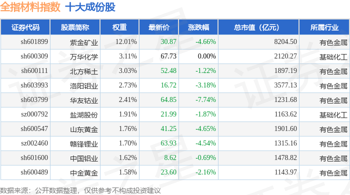 资金流向方面,全指材料(000987)指数成份股当日主力资金净流出合计154.18亿元,游资资金净流入合计54.77亿元,散户资金净流入合计99.41亿元。成份股资金流向详情见下表: