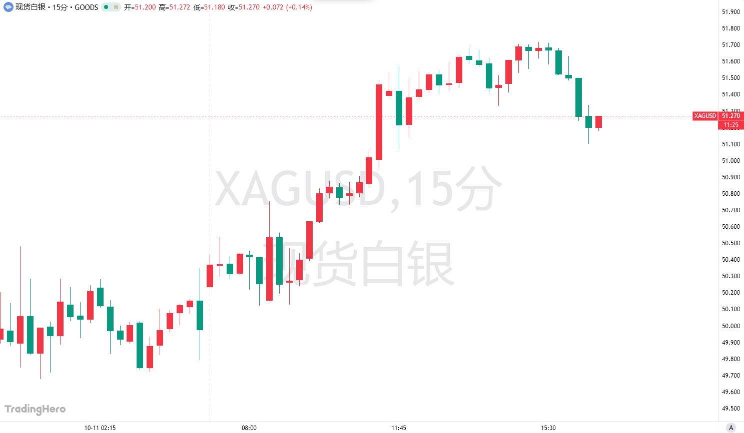 上周,国际现货白银价格首次突破每盎司50美元大关,随后有所回落。周一,其再将历史新高刷新至51.60美元上方,截止发稿前,白银日内涨近3%,徘徊在每盎司51美元左右。