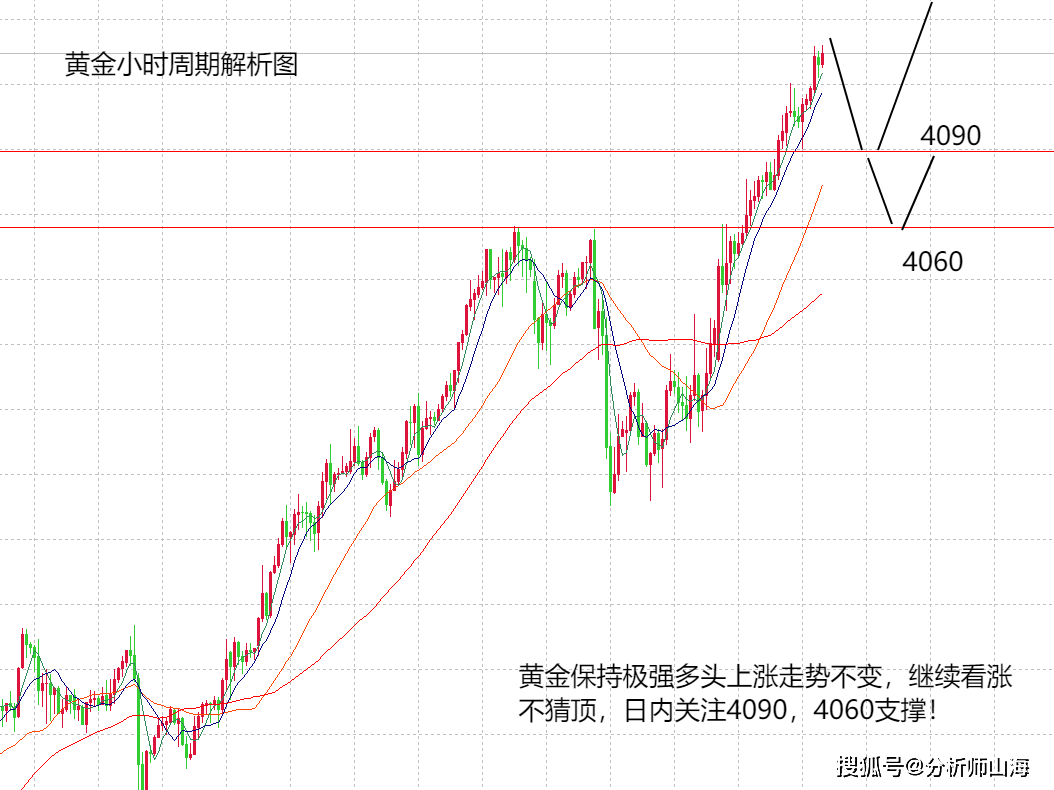 从年初到现在,黄金已经上涨了接近1600美金,历史绝对仅有,虽然山海也不知道能有如此大的涨幅,山海跟大家一直强调,今年一定是看涨做多黄金,并且不猜顶。如果保持这个信念来做今年的行情,赚多少看自己,但至少不会让自己陷入无限的深渊。今年行情就专治各种不服,各种想挑战抄顶做空的朋友,只要你做空不出,不管什么点位,都只能是被挨打的份。因为黄金没有高点,只有更高。山海讲过,近期黄金市场还有一个规律,每周周一开盘的时候,黄金就出现单边大涨,连续几周都是这样走,包括本周一,黄金从4025开始上涨,到午夜最高4115,也走出了90美金的大涨空间,丝毫没有回落或者给你做多的机会,除非你激进买入。今天早上开盘,黄金继续跟涨,现在已经上涨到4150高点,毫无疑问,今天继续保持顺势做多看涨即可,下方支撑关注两个点,一个是4090,一个是4065,这两个点是技术面的关键支撑点,回落到这两个点做多是没有问题的,但是问题是能不能回落到这两个关键点,跟周一一样,如果没有回落到关键支撑点,直接走出上涨,那么,我们宁可不做,宁可错过这波行情。至于周二是否能有一波调整空间,这个也需要谨慎的对待,上上周周二黄金提前大跌,并且也有激进80美金力度,如果今天有跌,则看今晚的可能性。