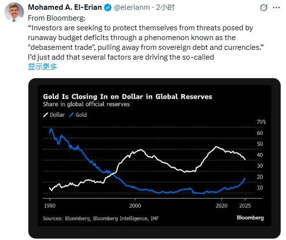 亿万富豪达里奥和肯·格里芬公开表示"黄金可能比美元更安全",加拿大养老金计划投资委员会负责人警告美国国债可能失去避风港地位,知名作家Nassim Taleb更是指出不断膨胀的美国赤字正在埋下几乎不可避免的债务危机种子。