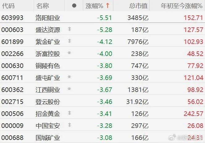 A股黄金股集体下跌,其中,洛阳钼业、盛达资源跌超5%,紫金矿业、浙富控股跌超4%,铜陵有色、盛屯矿业、江西铜业、招金黄金跌超3%。