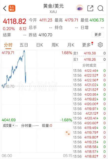 据财联社,14日午后,现货黄金短线急跌超40美元。