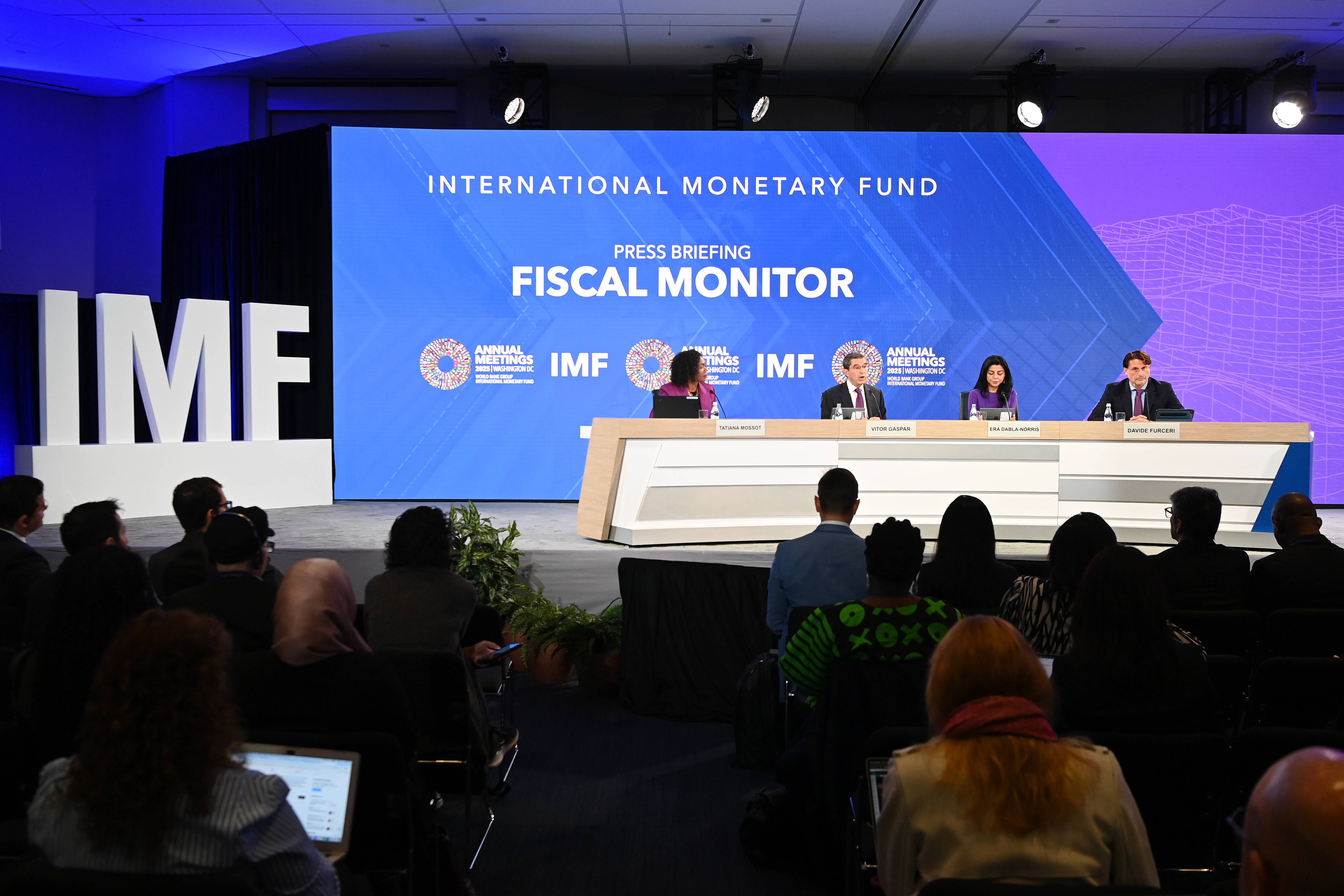 这是10月15日在美国华盛顿拍摄的国际货币基金组织《财政监测报告》新闻发布会现场。 新华社记者 李睿 摄