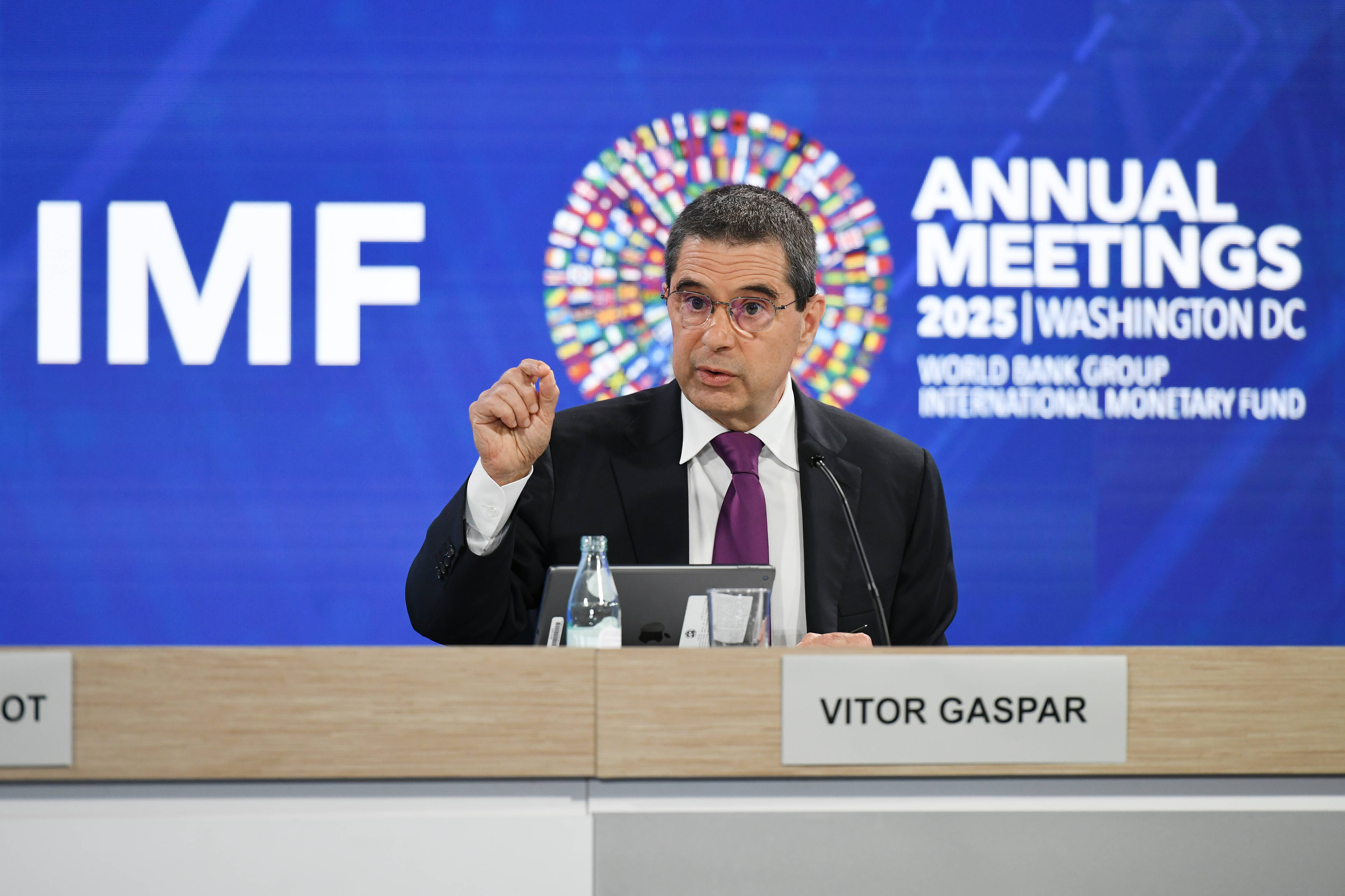 10月15日,在美国华盛顿,国际货币基金组织财政事务部主任维托尔·加斯帕尔在《财政监测报告》新闻发布会上讲话。 新华社记者 李睿 摄