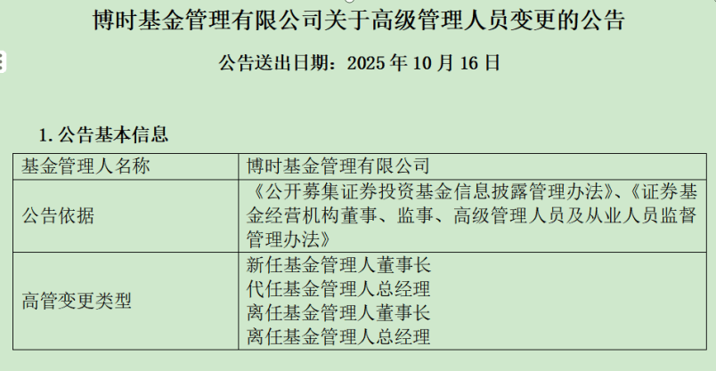 【大河财立方 记者 孙凯杰】10月16日,博时基金发布高级管理人员变更公告,经博时基金管理有限公司第九届董事会2025年第五次临时会议决议,同意江向阳先生因工作安排辞任公司董事长。博时基金党委书记、总经理张东先生正式接任公司董事长,同时自10月15日代为履行公司总经理职务。