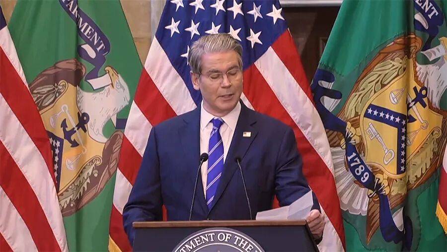 当地时间10月15日,美国财政部长贝森特召开新闻发布会。 视频截图