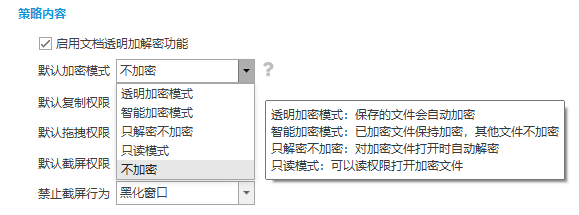 不加密:权限关闭模式,加密文件无法打开,新建文件不加密。
