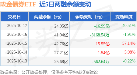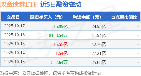 证券之星消息,10月17日,政金债券ETF(511520)融资买入1.09亿元,融资偿还18.08亿元,融资净卖出16.99亿元,融资余额24.95亿元,近20个交易日中有11个交易日出现融资净买入。