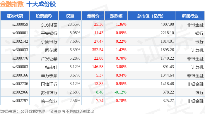证券之星消息,10月21日,金融指数(399240)报收于1680.28点,涨1.14%,成交332.13亿元,换手率1.29%。当日该指数成份股中,上涨的有34家,瑞达期货以9.98%的涨幅领涨,下跌的有1家,苏州银行以0.12%的跌幅领跌。