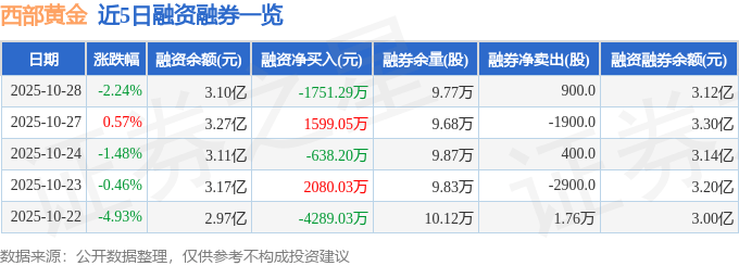 证券之星消息,截至2025年10月28日收盘,西部黄金(601069)报收于27.51元,下跌2.24%,换手率2.41%,成交量21.4万手,成交额5.93亿元。