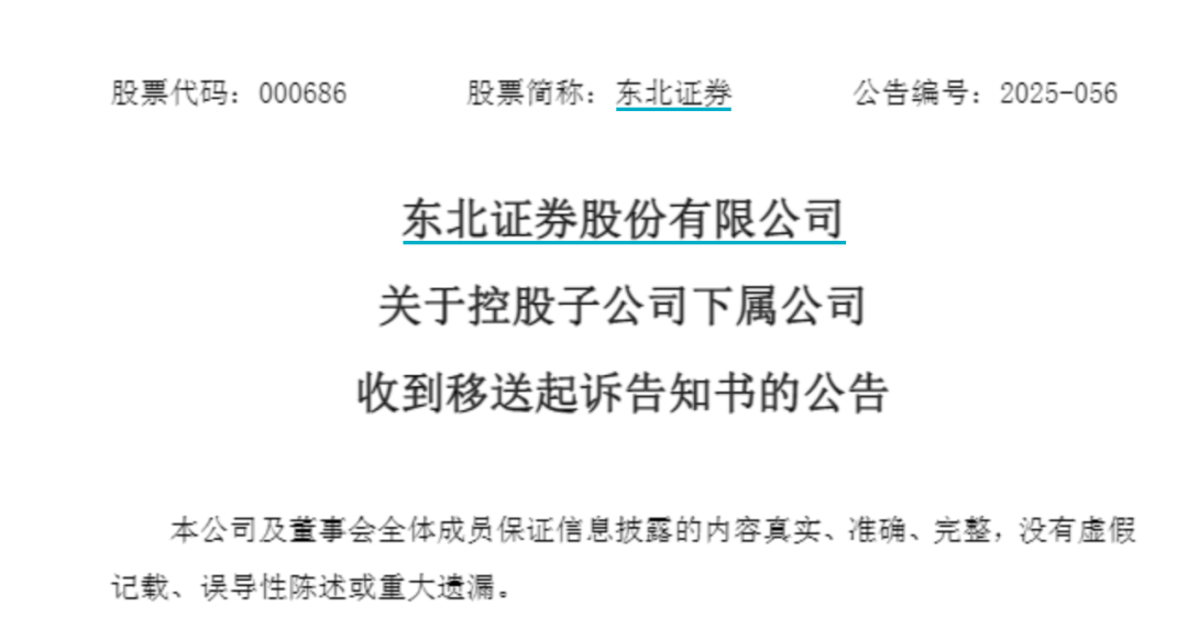 【导读】东北证券旗下公司被移送检察院审查起诉