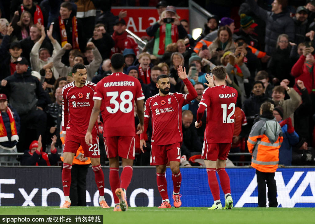 最终,利物浦主场2-0战胜阿斯顿维拉,结束联赛四连败。
