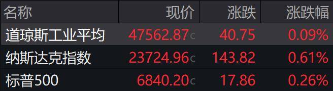当地时间上周五,美股三大股指尾盘拉升。截至收盘,道指涨0.09%,标普500指数涨0.26%,纳指涨0.61%。
