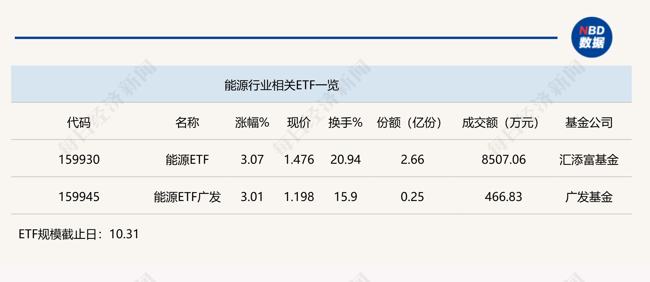 ETF涨幅榜上,在石油、煤炭以及天然气行业集体带动下,今日两只能源ETF表现出色,半日涨幅均超过3%,领涨整个行业、主题ETF。