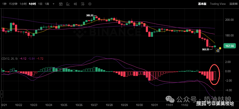 SOL最低跌至163美元,狂泻了26个点,反弹依然很弱。说明普遍在观望,买盘量小。