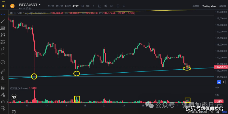 BTC最低跌至105300附近,目前价格正在在三角形内运行,价格波动收窄,结构收敛,将要发生较大变盘;