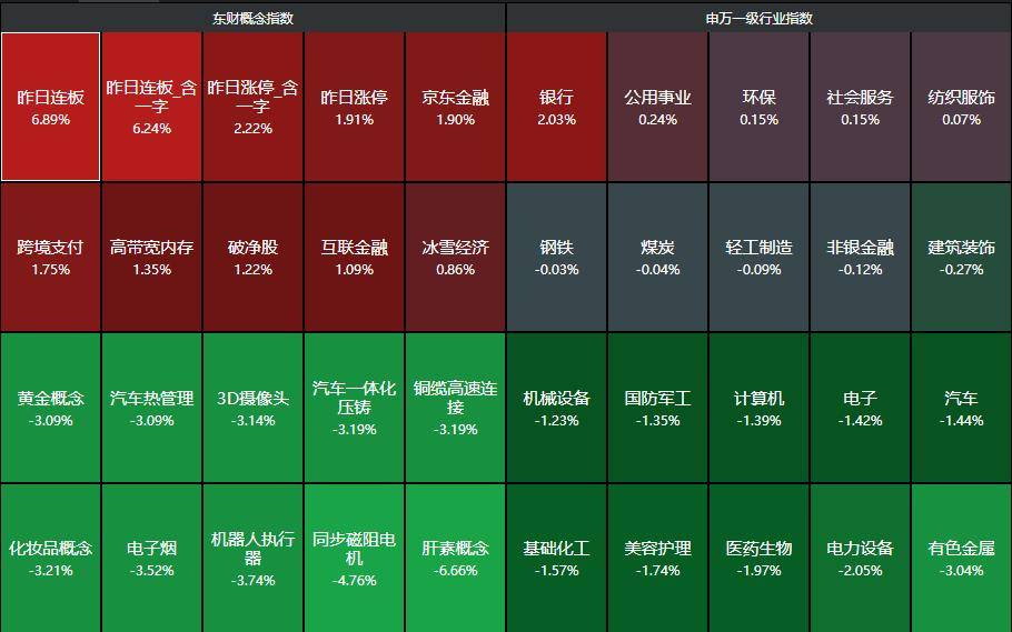 分行业来看,银行、公用事业、环保、社会服务等行业领涨,有色金属、电力设备、医药生物等行业领跌。