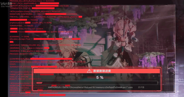 3.7版本开服前一天晚上,大家发现星穹铁道官方直播间开启了一场漫长的资料删除活动,背后是黄金裔的角色PV滚动,前方却展示着删除进度: