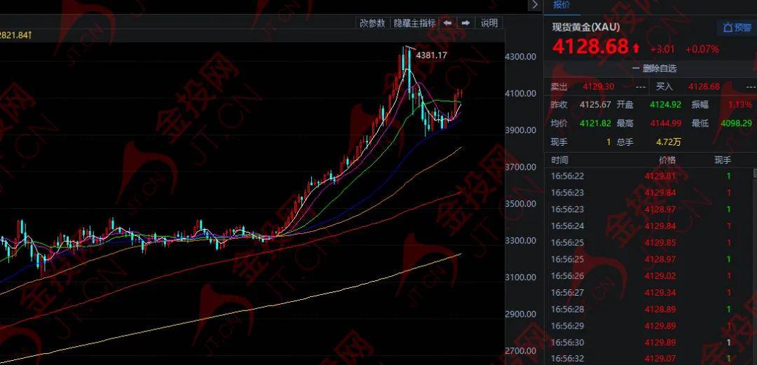 原创 黄... 隔夜,现货黄金上涨0.27%,收报4126.62美元,盘中最高触及4148.91美元,创下10月23...