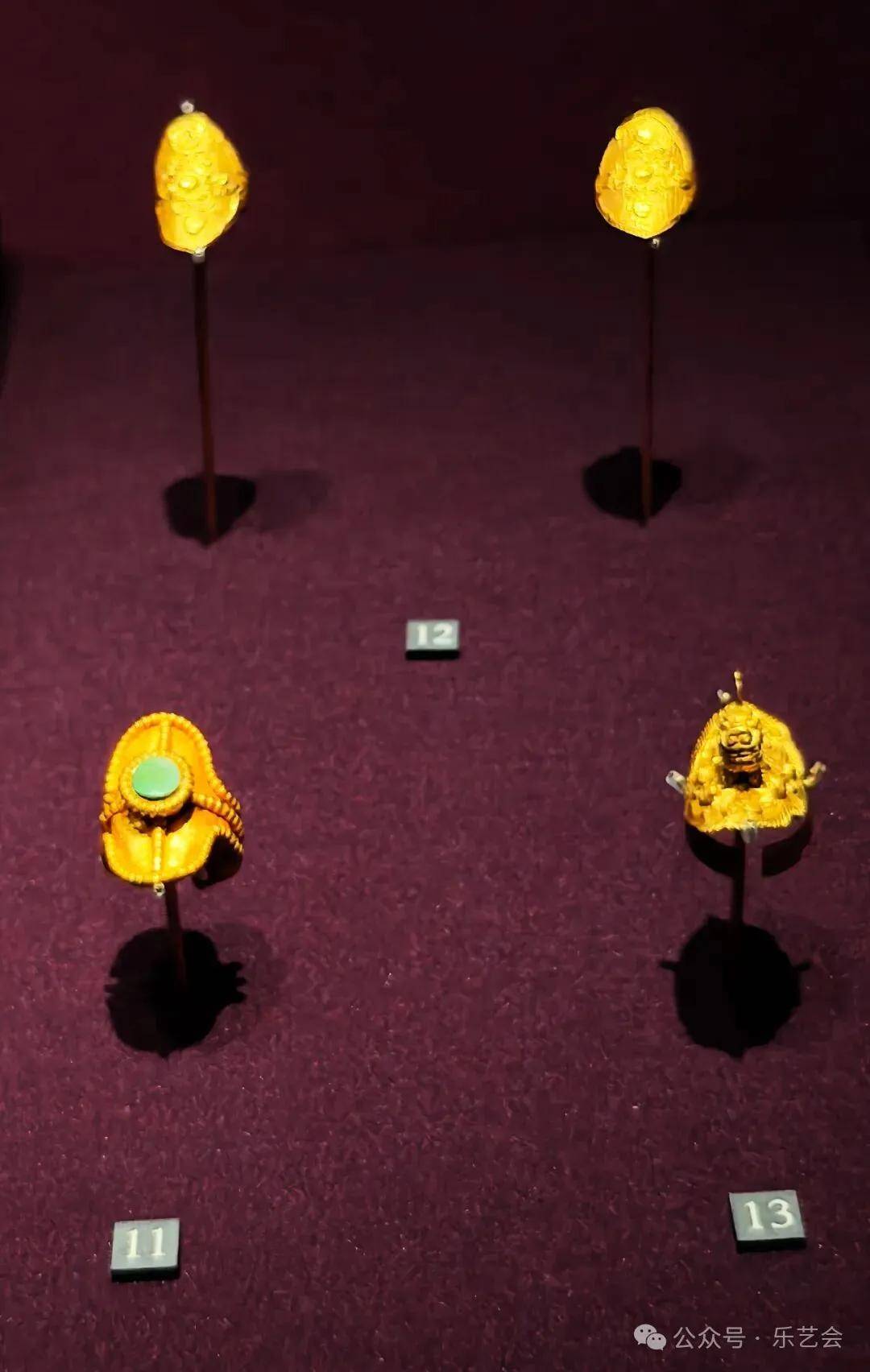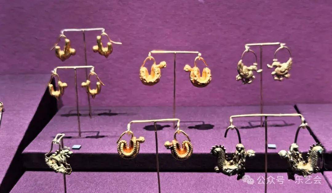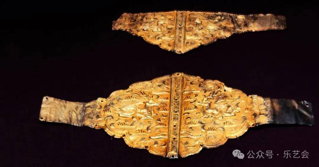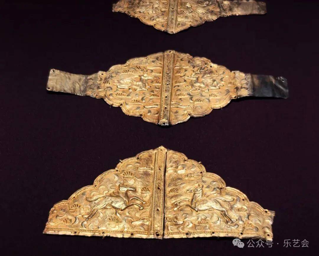 展品类型涵盖首饰、腰带饰件、车马饰、礼仪用具等,造型各异、工艺精湛。其中,公元前15世纪-13世纪的喇叭口金饰,见证了黄金工艺从欧亚大陆西端向东传的轨迹;战国至汉代的卷曲动物纹饰牌,呈现了草原游牧民族独特的“动物纹”艺术风格;唐代金饰则展现了丝绸之路多元文化交融的华丽风采;而辽宋时期的金带钩与头饰,则体现了中原与北方草原文化的深度融合。此外,展览还特别关注金器工艺技术的发展。