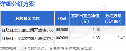 证券之星消息,11月27日发布《红塔红土长益定期开放债券型证券投资基金分红公告》。本次分红为2025年第一次分红。公告显示,本次分红的收益分配基准日为11月11日,详细分红方案如下: