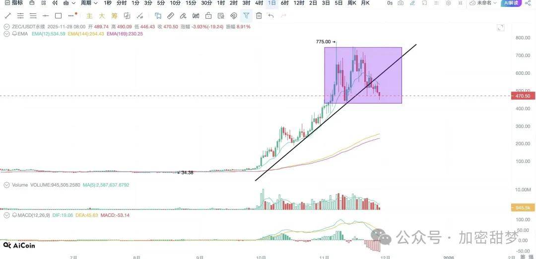 ZEC这个区间有派发的味道了,个人感觉这个位置ZEC的风险大于机会, 425是双顶颈线位置,一旦跌破,就可以确认大概率见顶,后面就可以尝试反弹主空了。
