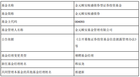 中国经济网北京11月28日讯 今日,金元顺安基金公告,金元顺安桉盛债券增聘韩辰尧。