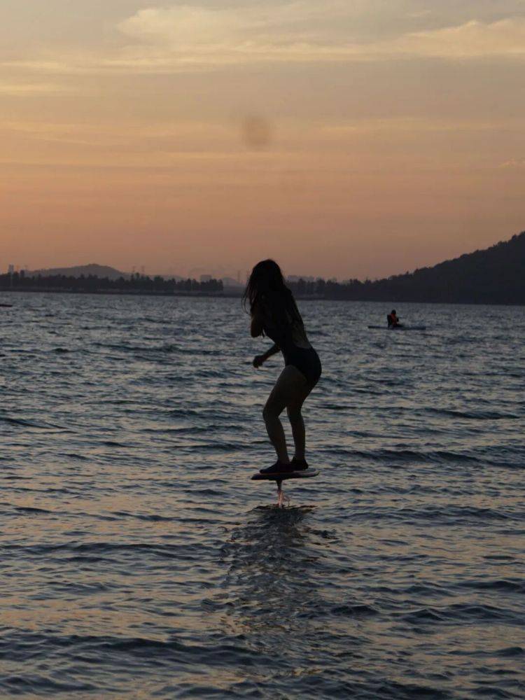 “视频是上周日清晨拍的,脚下的‘剑’是一块电动水翼板。”胡帆走路快速有力,说话干脆利落。她告诉记者,两年多前,她接触到无动力水翼运动,并成为武汉第一个掌握无动力水翼技术的女性,之后业余时间一直致力于这项运动的推广。今年,她开始尝试推广更容易操作的电动水翼板。