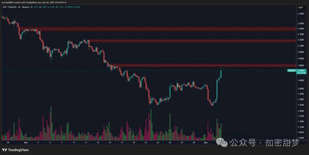 SUI依旧还是下跌抄底首选之一!反弹每次都是最强势的之一,所以每次大饼瀑布的时候就是我们抄底sui的时候。等一波机会吧!预计1.4附近抄底现货,其他价格就完全没什么性价比了!压力位:1.8、2.2、2.4