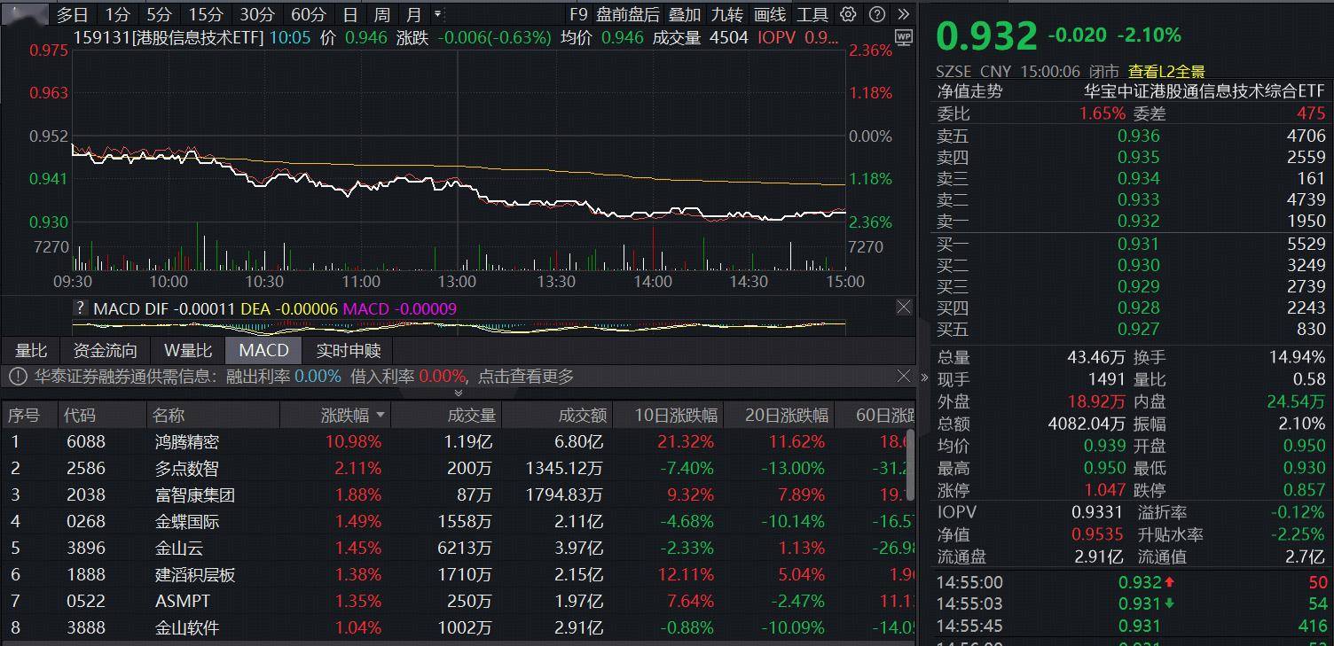 三、中芯国际、华虹半导体双双大跌,港股信息技术ETF(159131)跌2.1%止步三连阳,机构:国产替代诉求仍较强