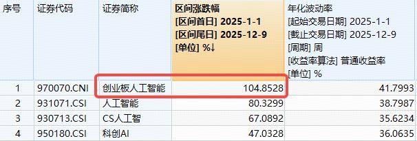 年内复盘看,受益于AI算力需求高景气,光模块CPO等算力硬件迎业绩+估值双击,因光模块CPO含量超56%,创业板人工智能ETF华宝(159363)标的指数频刷新高,年内涨幅高达104.85%,已翻倍增长有余,大幅领跑人工智能、CS人工智、科创AI等同类AI主题类指数!