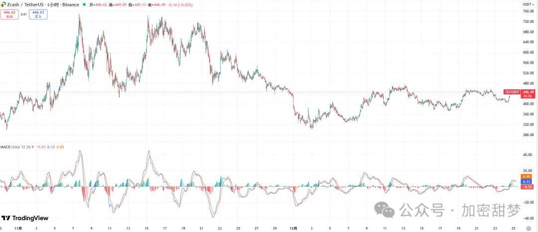 ZEC再次来到了450-470这个阻力,不过之前已经在这里做空3次了,这一次谨慎一点,用之前赚的利润空下就好。