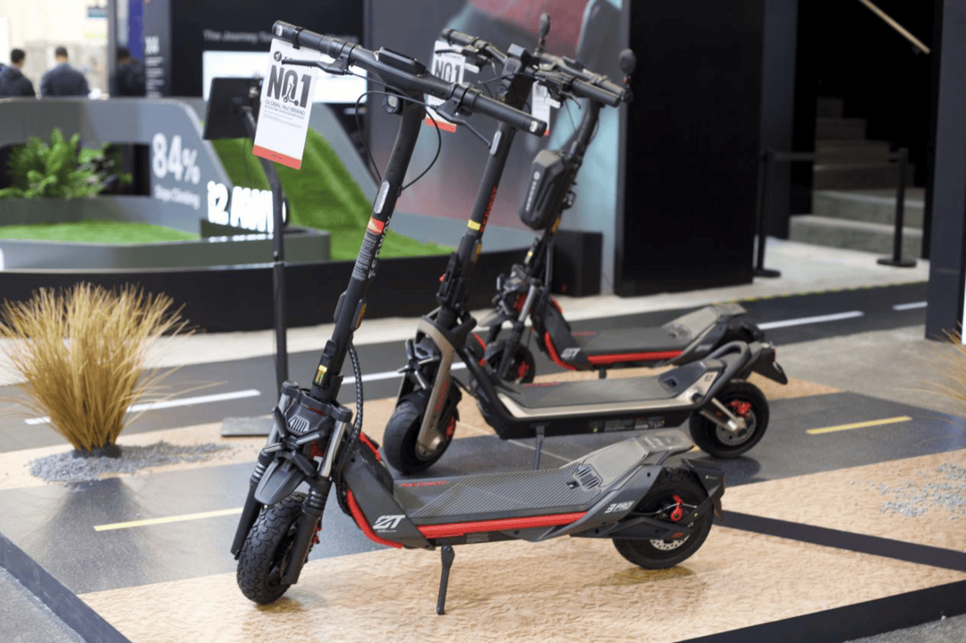 除了E-bike和电动越野摩托车外,九号公司的滑板车也吸引了很多参展观众的目光。权威市场分析机构欧睿国际调研数据显示:按2023年各企业自有品牌的电动滑板车销售额计,九号公司电动滑板车销售额位居全球第一。到2025年,九号电动滑板车累计出货量已超1500万台。
