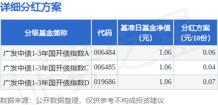 证券之星消息,1月13日发布《广发中债1-3年国开行债券指数证券投资基金分红公告》。本次分红为2025年度的第4次分红。公告显示,本次分红的收益分配基准日为12月12日,详细分红方案如下: