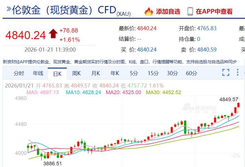 21日亚太早盘,现货黄金站上4800美元/盎司,国内部分品牌金饰价突破1500元。