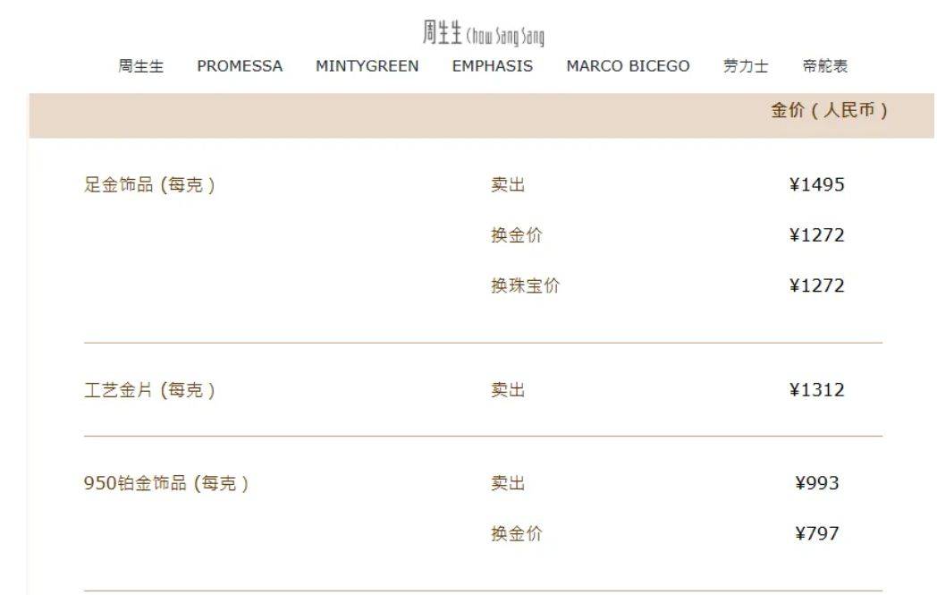 周生生官网发布数据显示,足金饰品报1495元/克,较1月20日1454元/克涨41元/克。
