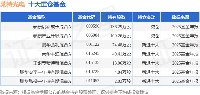 重仓莱特光电的公募基金请见下表: