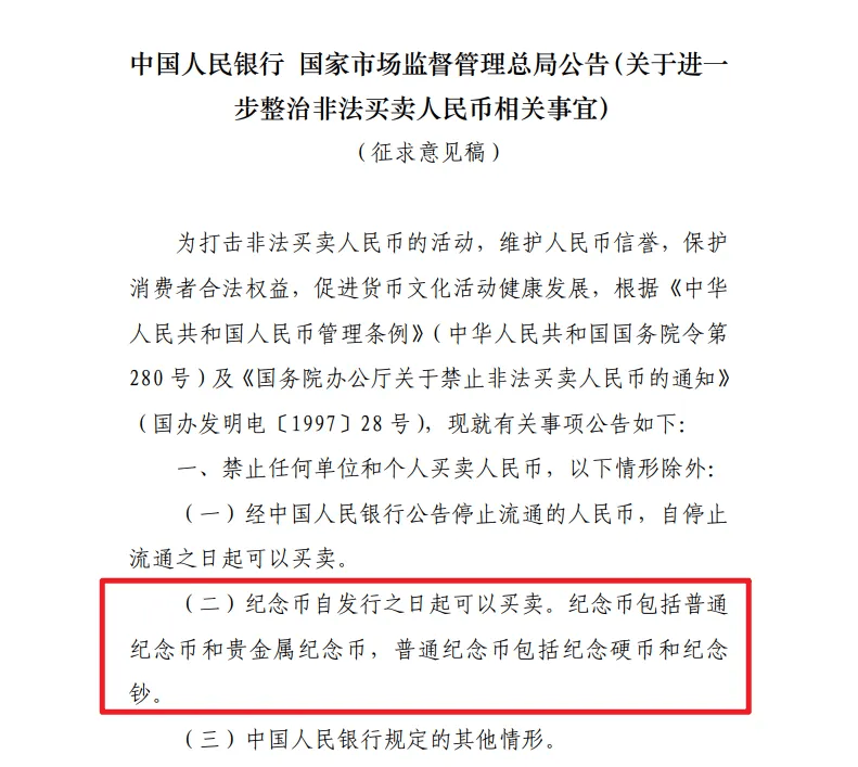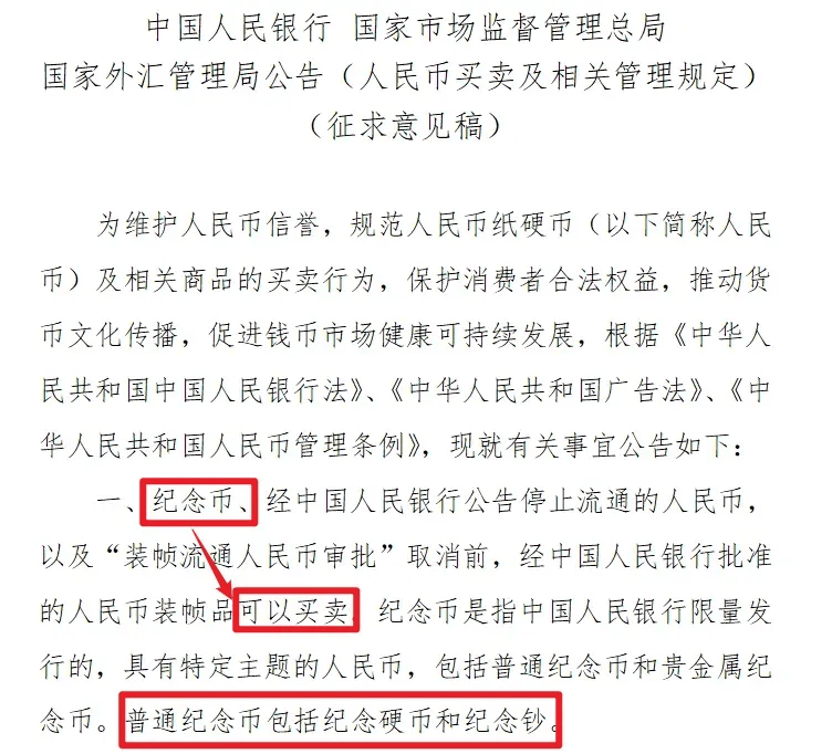 最重要的是,2021年与去年最新发布的两版人民币买卖相关事宜(意见征求稿)中,已明确提及“纪念币自发行之日起可以买卖”。