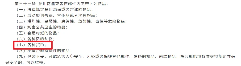 在1990版《邮政法实施细则》中确实有提到“各种货币禁止寄递”。