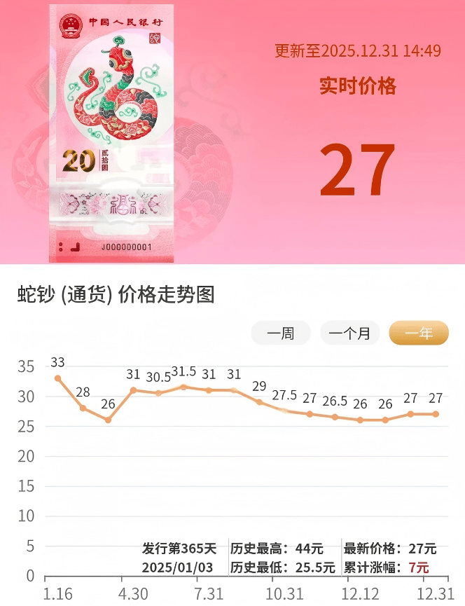 可以看到,相比兑换之初,甚至是相比今年年初,蛇年币钞的表现已经全面崩盘。
