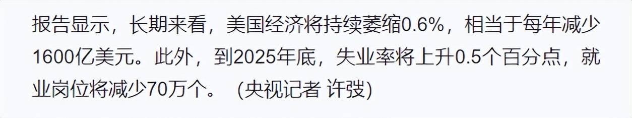 结果呢?搬起石头砸了自己的脚。耶鲁大学算过一笔账,就这关税政策,美国每个家庭平均要多花4400美元,到年底还得多丢70万个工作岗位,第一季度GDP直接萎了0.3%。