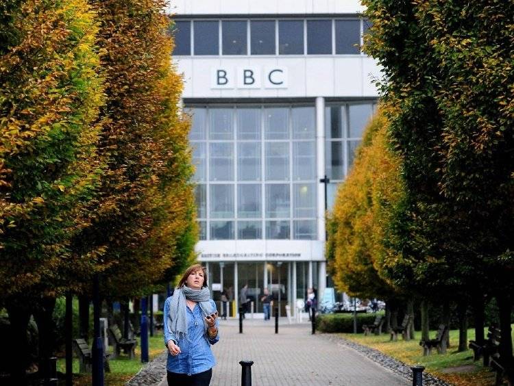 在英国首都伦敦,一名女子离开英国广播公司(BBC)电视中心。新华社资料图
