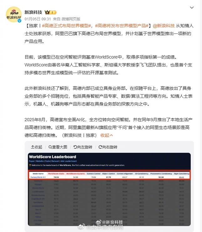 1. 世界模型杀疯了:高德新搞的世界模型,在李飞飞团队的WorldScore评测里拿下多项指标第一!这可是首个多模态世界生成模型的权威测试,相当于AI界的“空间智能高考状元”[666]