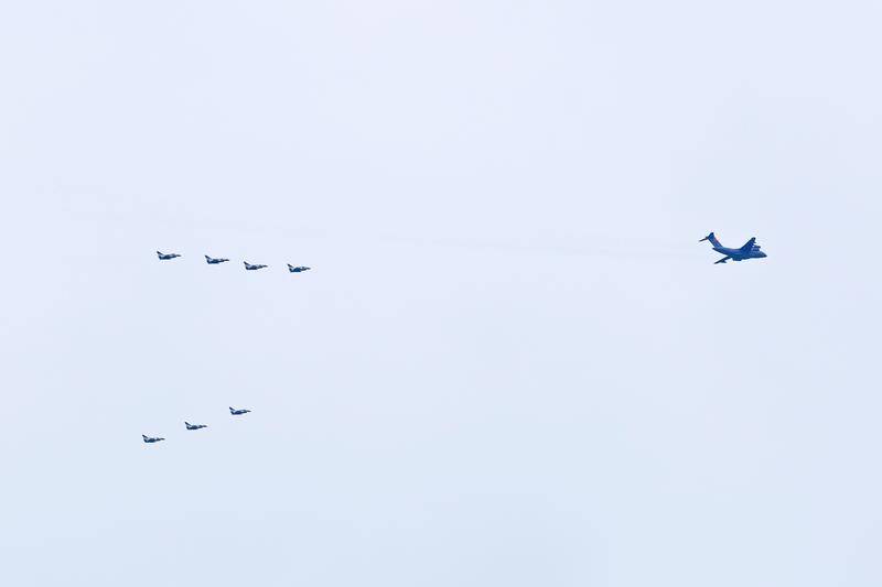 中国空军八一飞行表演队组建64年来,先后装备歼-5、歼-6、歼教-5、歼-7EB、歼-7GB、歼-10、歼-10C表演机,为180多个国家和地区的800多个代表团进行了800余次飞行表演,用多彩航迹架设传递和平的友谊桥梁,成为和平使者、文化使者、友谊使者。