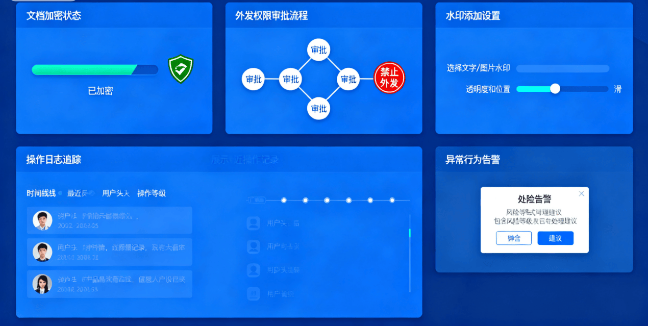 内置敏感词库,当员工尝试外发含关键词文件时,系统立即弹窗警告并阻断操作,同时向管理员推送报警信息,记录操作时间、文件路径、接收方等关键信息,解决“人工审核效率低下”痛点。